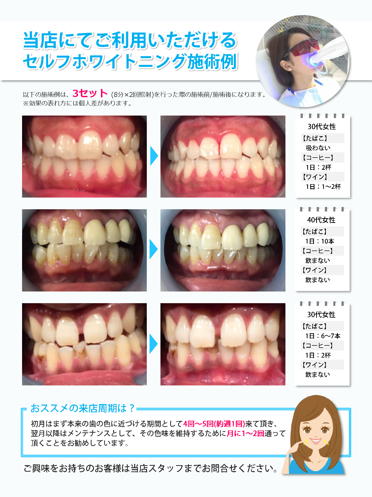 施術を始める前に、スタッフがサービス内容をご案内させていただき、お客様の歯の状態をお伺います。