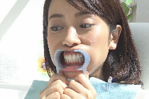 開口器(マウスオープナー)を装着し、歯の表面の水分を取り除きます。
